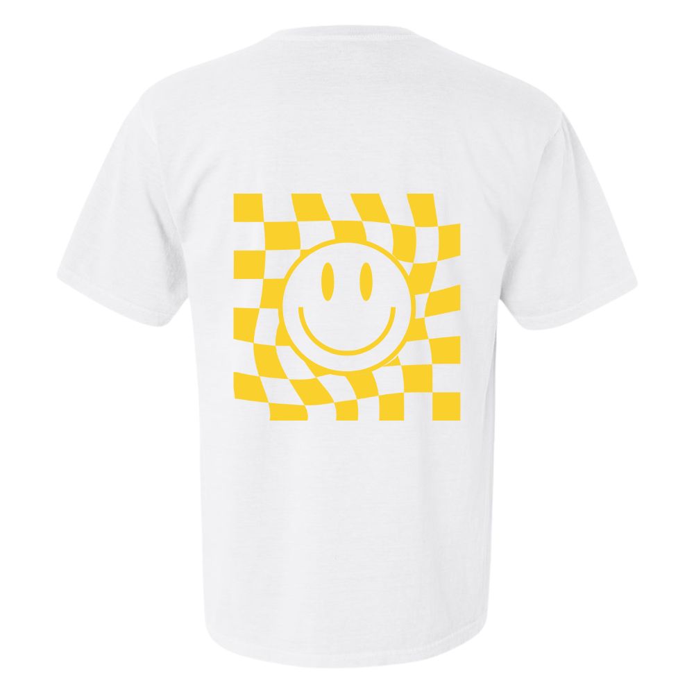 Checkerboard Smiley Face T-Shirt in White w/Yellow