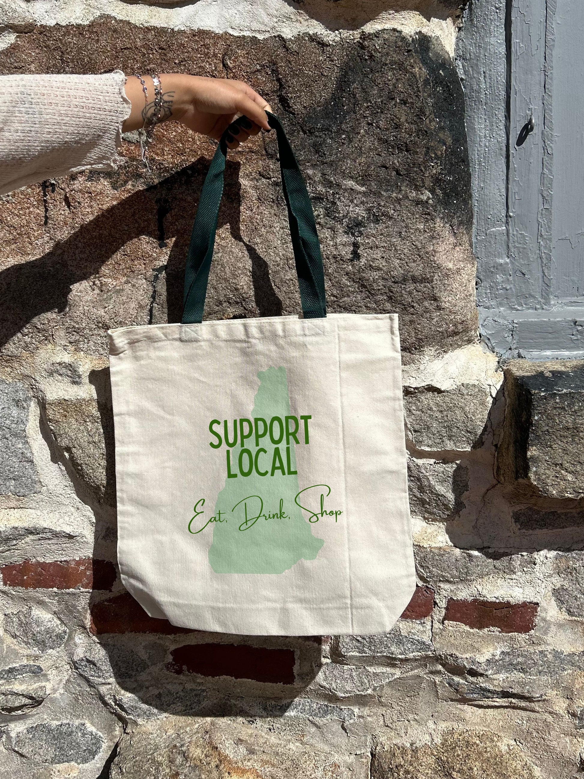 Experience the convenience and style of our market tote bag made from durable cotton canvas. This tote bag features 22 inch forest green handles for easy carrying and a gusseted bottom to hold all your market finds. Perfect for your next shopping trip or farmers market.