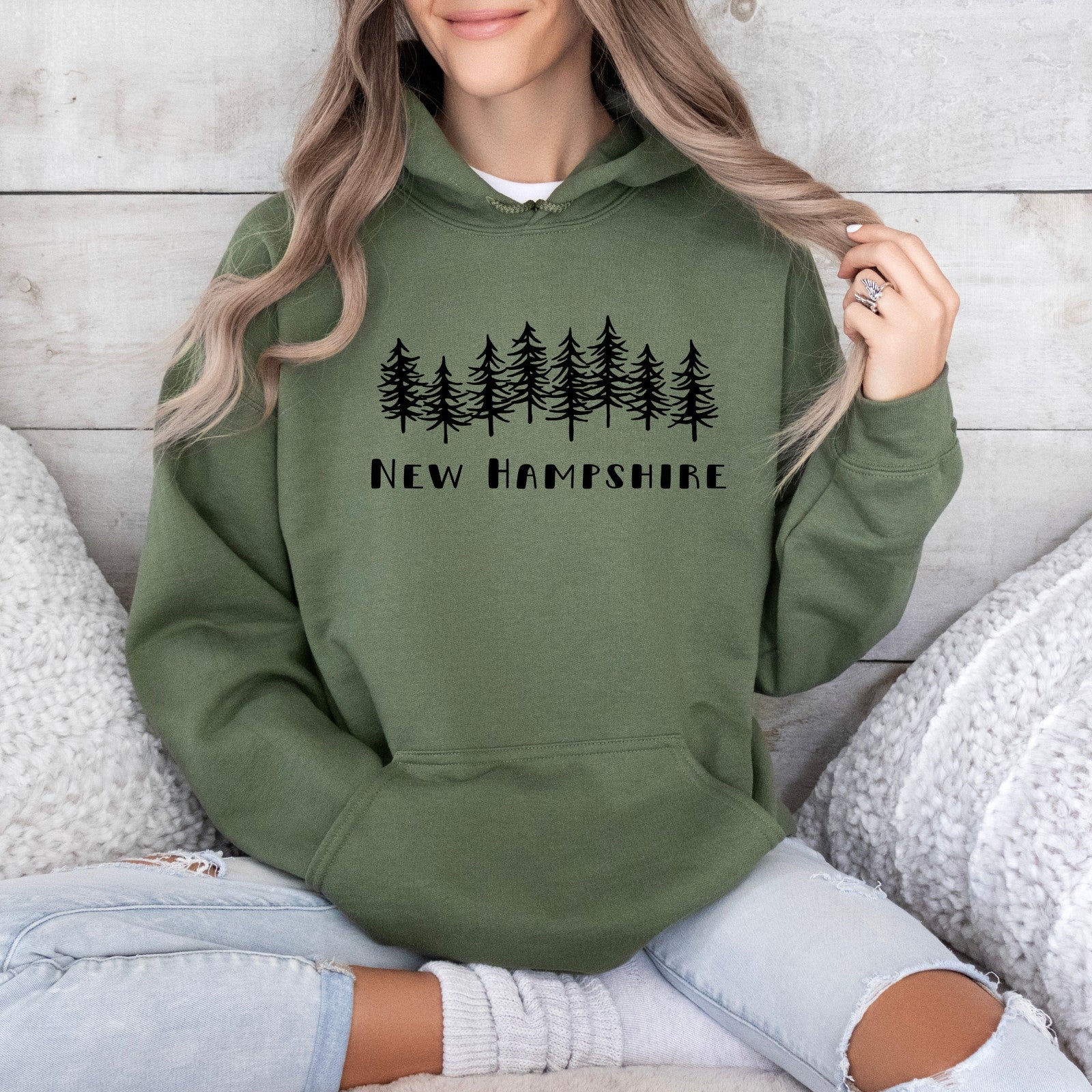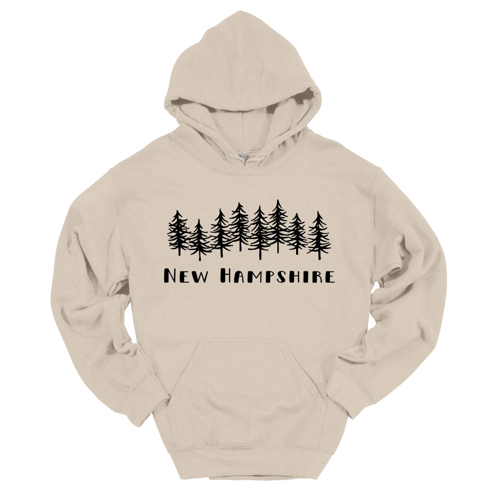 New Hampshire with Trees Hoodie in Sand or Military Green